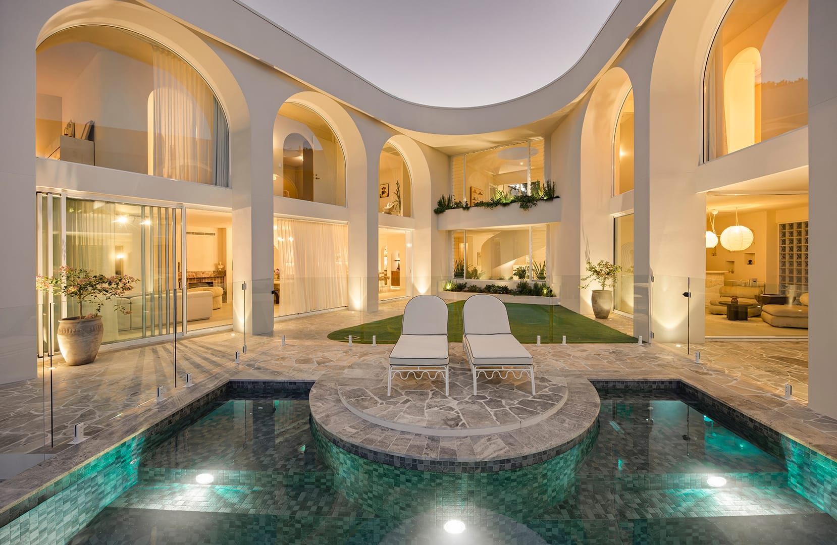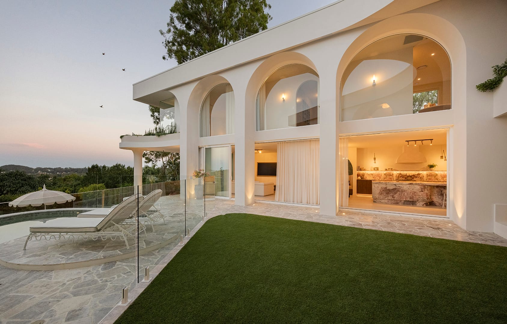 The completed glazing package supports the home’s architectural form and open visual connections. Large expansive openings, custom arched windows and refined junctions create continuity between interior spaces and the surrounding views. At the same time, the combination of systems provides functionality and long-term performance.